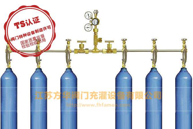 气体汇流排是一种集中充气或供气的装置,它是将多只钢瓶气体通过阀门、导管联接到汇流总管,以便同时对这些钢瓶充气;或者经减压、稳压后由管道输送到使用场所的专用设备,以保证用气器具的气源压力稳定可调,并达到不间断供气的目的。气体汇流排可以适用的介质有氦气、氧气、氮气、空气等气体,主要用于工矿企业、医疗机构、科研院校等用气量大的单位。本产品结构合理,工艺先进,操作简便,是保障 、实现文明生产的重要装置。本产品根据气瓶多少和配置式区分,具有多种结构形式,有1×5瓶组、2×5瓶组、3×5瓶组、5×5瓶组、10×5瓶组等可供选择,也可根据用户需要和环境要求作特殊配置。 本产品的气体压力适配于所配置的气瓶公称压力。